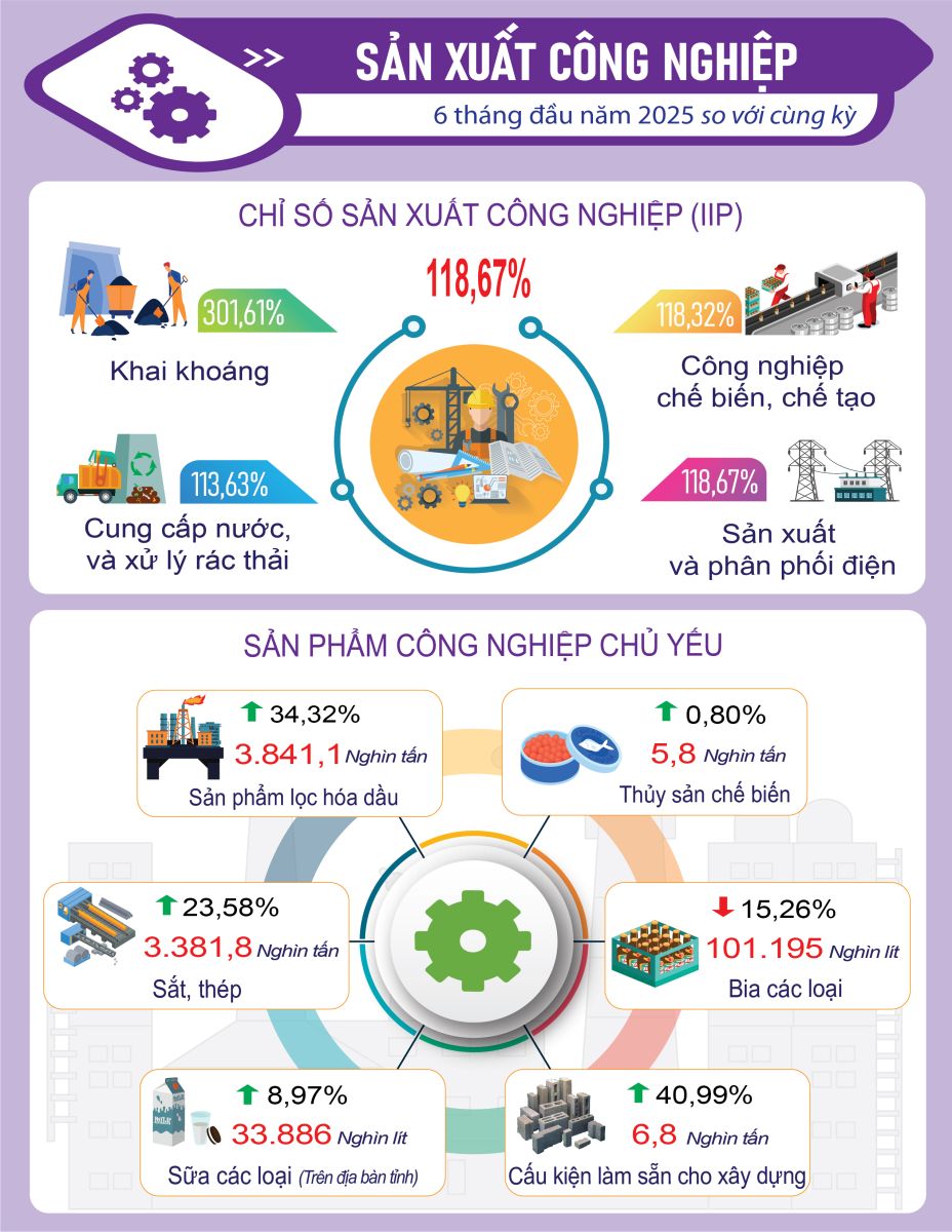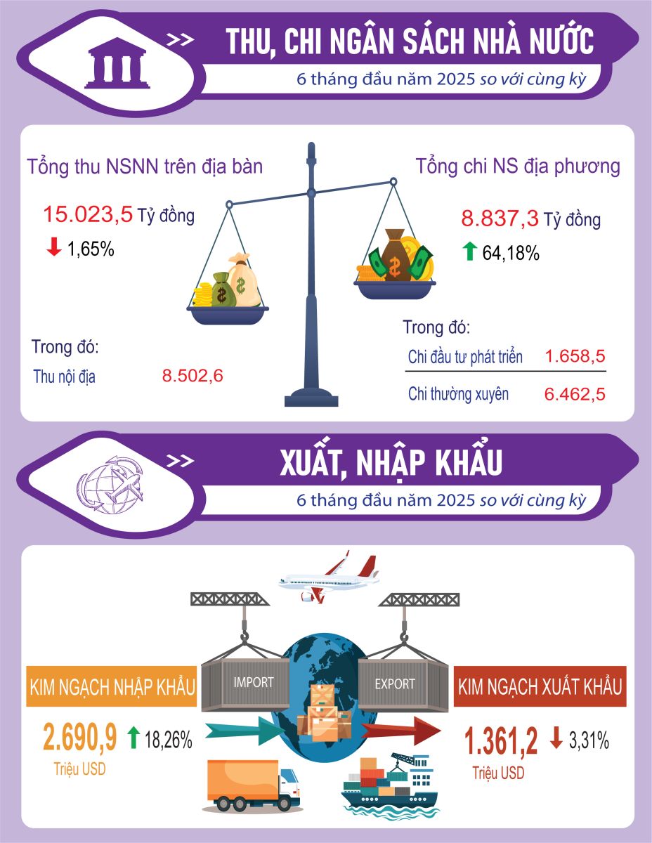 Thứ ba, 22/07/2025 | 10:54 A- A A+ | Infographic: Tình hình kinh tế - xã hội 6 tháng năm 2025 Đọc bài Lưu Infographic: Tình hình kinh tế - xã hội 6 tháng năm 2025