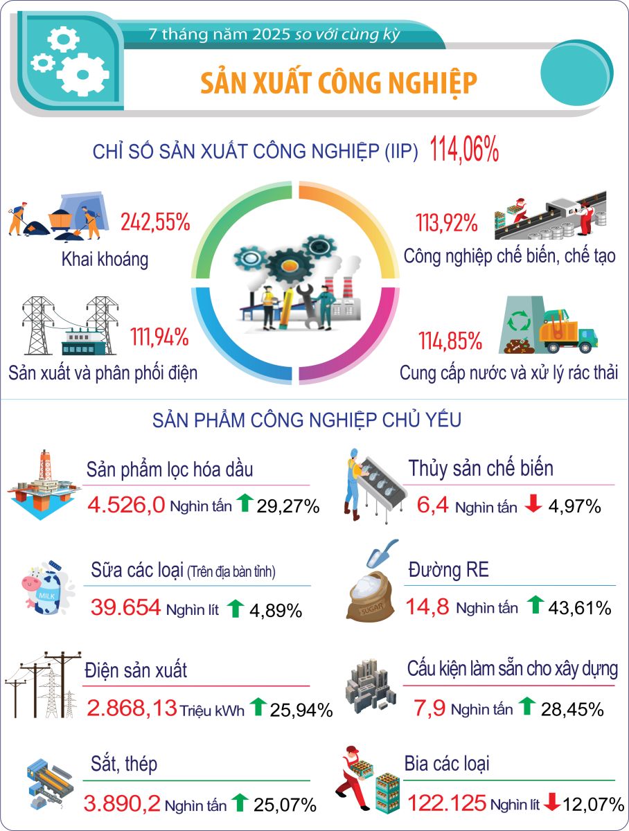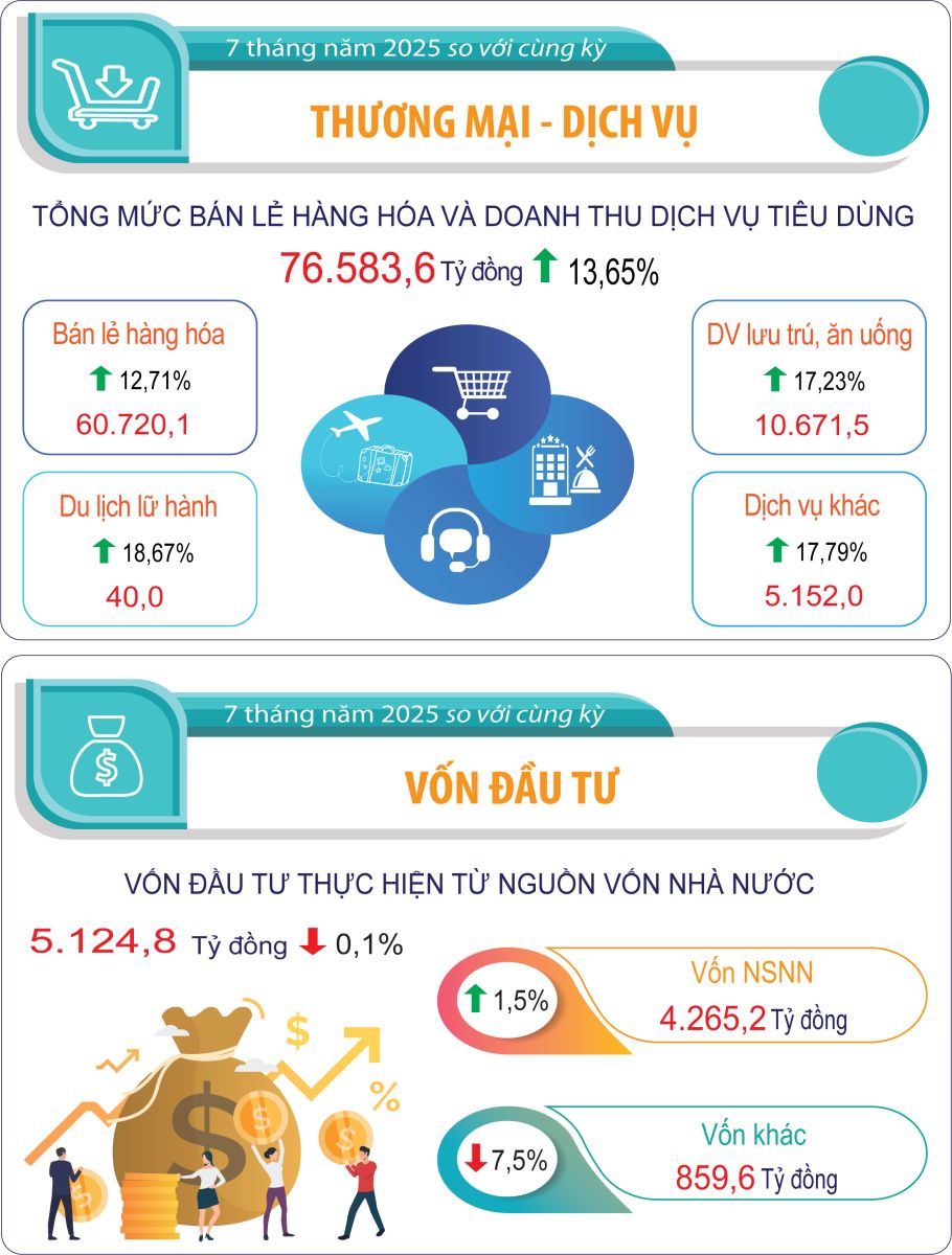 Thứ sáu, 22/08/2025 | 10:50 A- A A+ | Infographic: Tình hình kinh tế - xã hội 7 tháng năm 2025 Đọc bài Lưu Infographic: Tình hình kinh tế - xã hội 7 tháng năm 2025