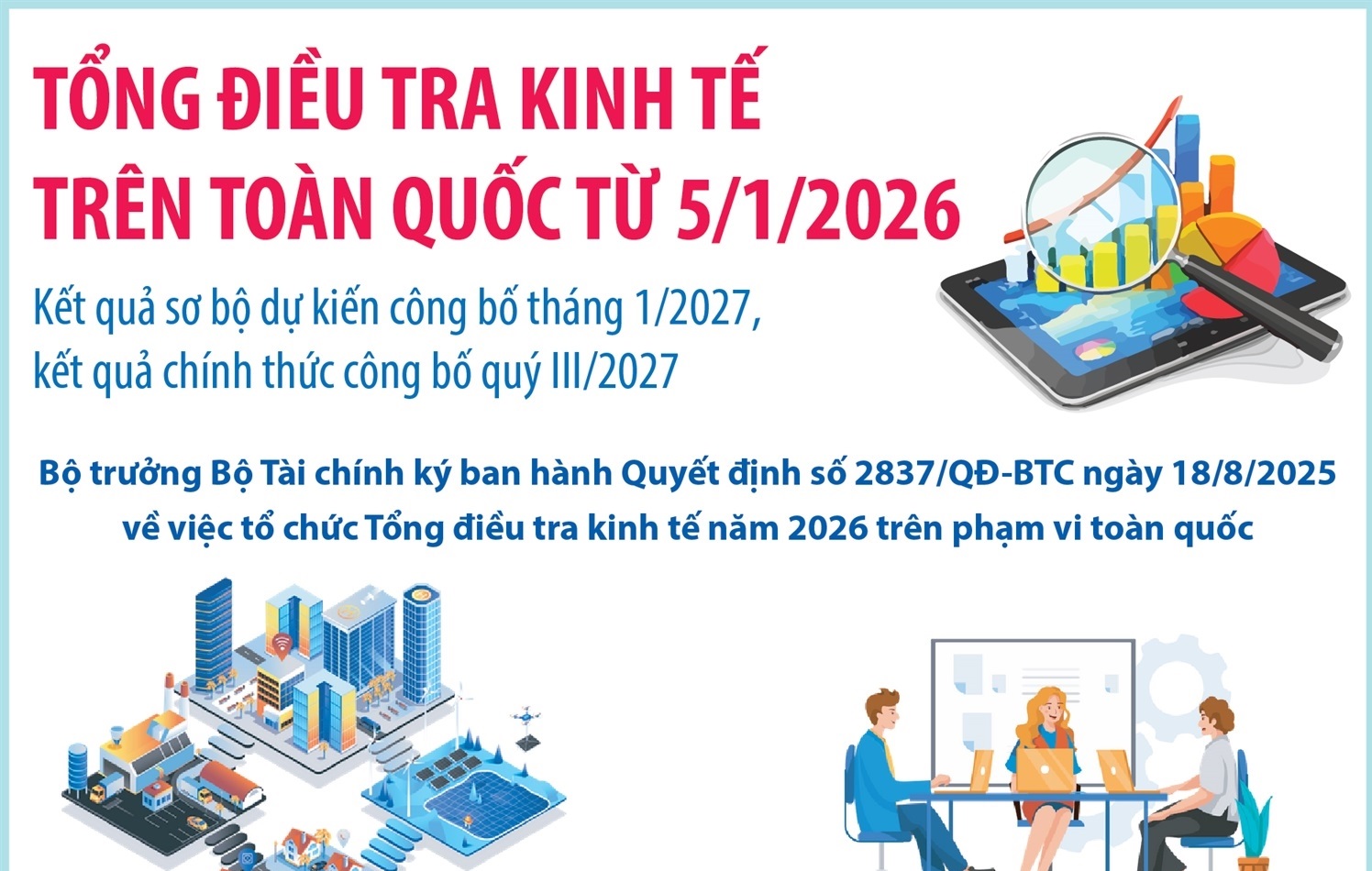 Ngày 18/8/2025, Bộ Tài chính ban hành Quyết định số 2837/QĐ-BTC về tổ chức Tổng điều tra kinh tế năm 2026